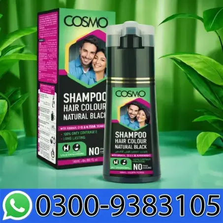 Cosmo Natural Black Hair Color Shampoo is a simple coloring solution that functions similarly to a standard shampoo but provides immediate black color coverage, particularly for white or gray hair. Conditioning elements that support healthy, lustrous hair are added to it. In only a few minutes, it can help hide gray hair and restore a rich, brilliant black tone, providing a quick and easy substitute for conventional hair colors. All hair types, even damaged and colored hair, are supposedly safe to use Cosmo Black Hair Color Shampoo. Additionally, it is claimed to have long-lasting effects, lasting up to three weeks.
