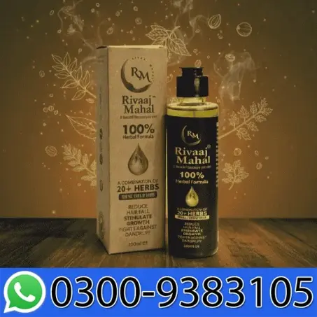 Herbal hair care oil called Rivaaj Mahal Hair Oil is sold as a healthy, all-natural remedy for scalp health and hair growth. In Pakistan, it is frequently marketed as being prepared with botanical and organic ingredients.This is the description of Rivaaj Mahal Hair Oil. A mix of natural herbal hair oil Both men and women can use it. intended for frequent hair nourishing and scalp massage made with plant-based components (oils and herbs).It helps promote scalp health, lessen hair loss, and give your hair a natural sheen because it is enhanced with natural oils and traditional herbal elements. Frequent use contributes to stronger, smoother, and easier-to-manage hair.