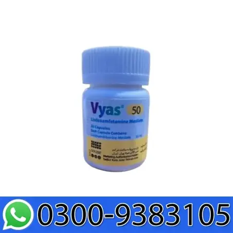 Vyas 50mg Tablets are a prescription medication used primarily to treat Attention Deficit Hyperactivity Disorder (ADHD) in children, adolescents, and adults. The active ingredient in Vyas 50mg is Lisdexamfetamine, a stimulant that works by increasing levels of dopamine and norepinephrine in the brain. This helps improve focus, attention, and impulse control, reducing symptoms of hyperactivity and inattentiveness.Vyas 50mg is usually taken once daily in the morning, with or without food. Dosage may be adjusted by a healthcare professional depending on age, response, and tolerance. Common side effects may include loss of appetite, insomnia, dry mouth, or mild anxiety. Regular medical supervision is important due to the potential for misuse or dependency.